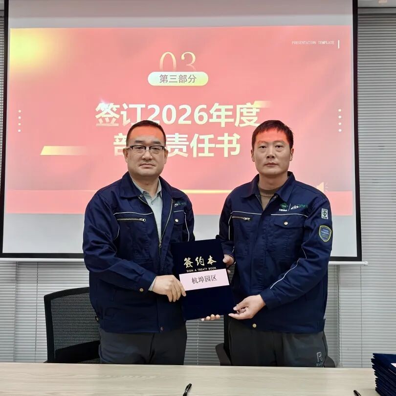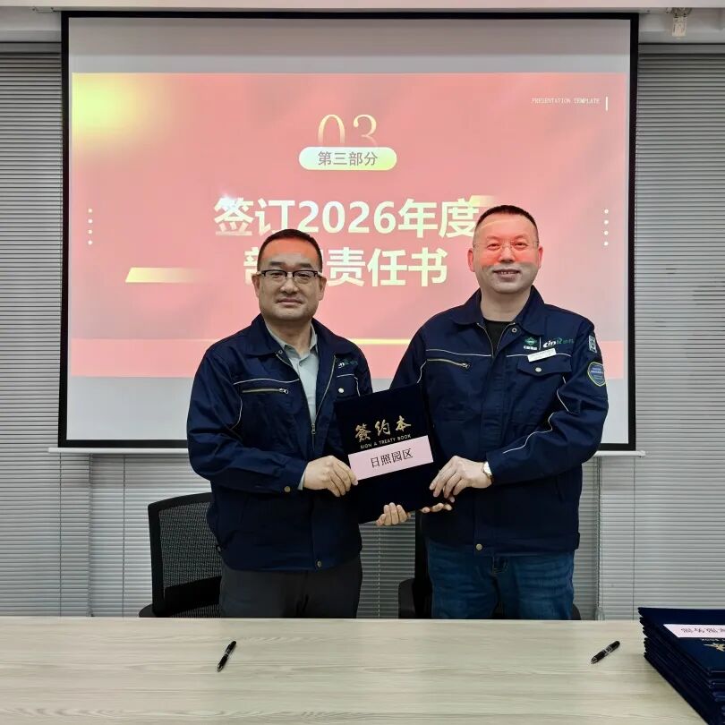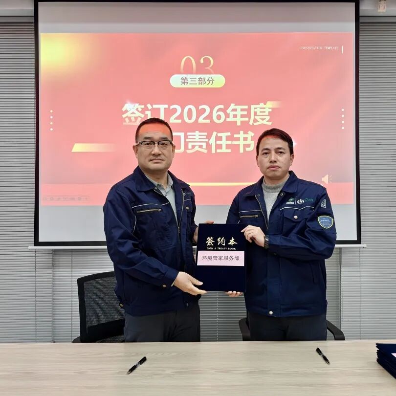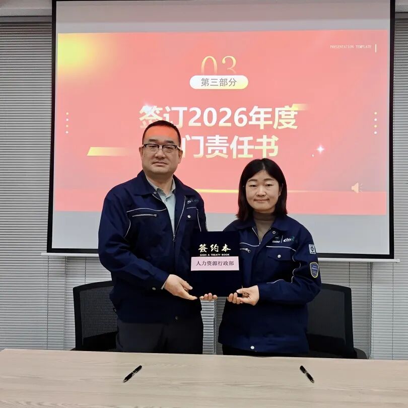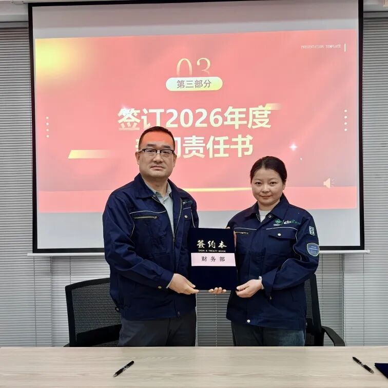 为明确 2026 年各部门工作目标,推动公司精细化管理落地,大会举行2026年度部门责任书签订仪式。公司总经理与技术研发部、设计部、工程部、园区服务部、运营部、环境管家部、安全部、采购部、信息部、人事行政部等各部门负责人依次签订责任书,将年度工作目标与责任层层分解、落实到人。