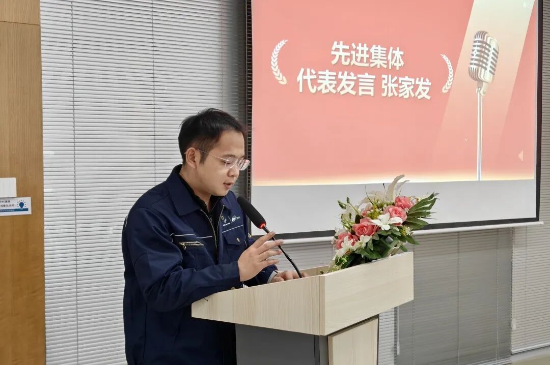 年度先进集体代表张家发分享:团队过去一年坚守高效严谨原则、在各类检测工作中齐心协力、全力以赴的实干经历,并围绕化验室扩建改造、标准化深耕、对外交流学习及配合公司服务等方面明确了未来规划,将持续以专业与担当为公司发展助力。